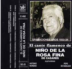 FRANCISCO DONCEL QUIRÓS, cantaor payo y con una personalidad fuera de serie, voz muy flamenca pura y potente con mucho estilo. Fue conocido con el nombre artístico del NIÑO DE LA ROSA FINA, nació en Casares (Málaga), en el año 1.896 y murió en su pueblo natal en el 1.981. debutó en Estepona y ha figurado en diversos elencos artísticos en jira por toda España.