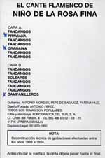 NIÑO DE LA ROSA FINA. Recorrió toda la geografía Española junto a Manuel Vallejo, Pepe Marchena, José Cepero, José Ruiz (Él Corruco de Algeciras, Fosforito el Viejo y otras grandes figuras del cante. Fue un especialista en fandangos, creó uno propio, le dio a todos los cantes un estilo creativo único, a igual que a los cantes de Granada, como podrán observa en este disco tan valioso.